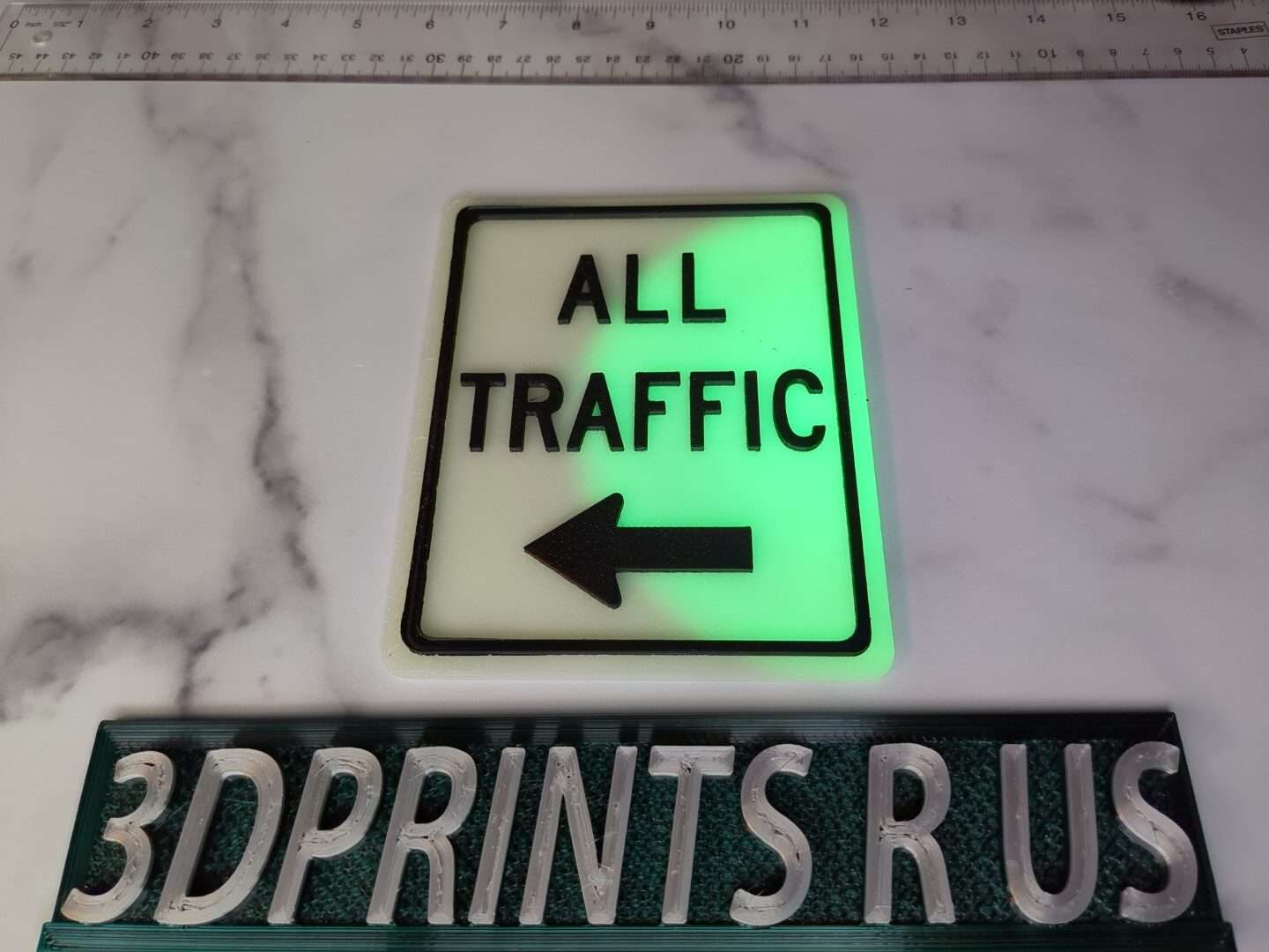 - All Traffic Left – Glow Green ackground Black Lettering