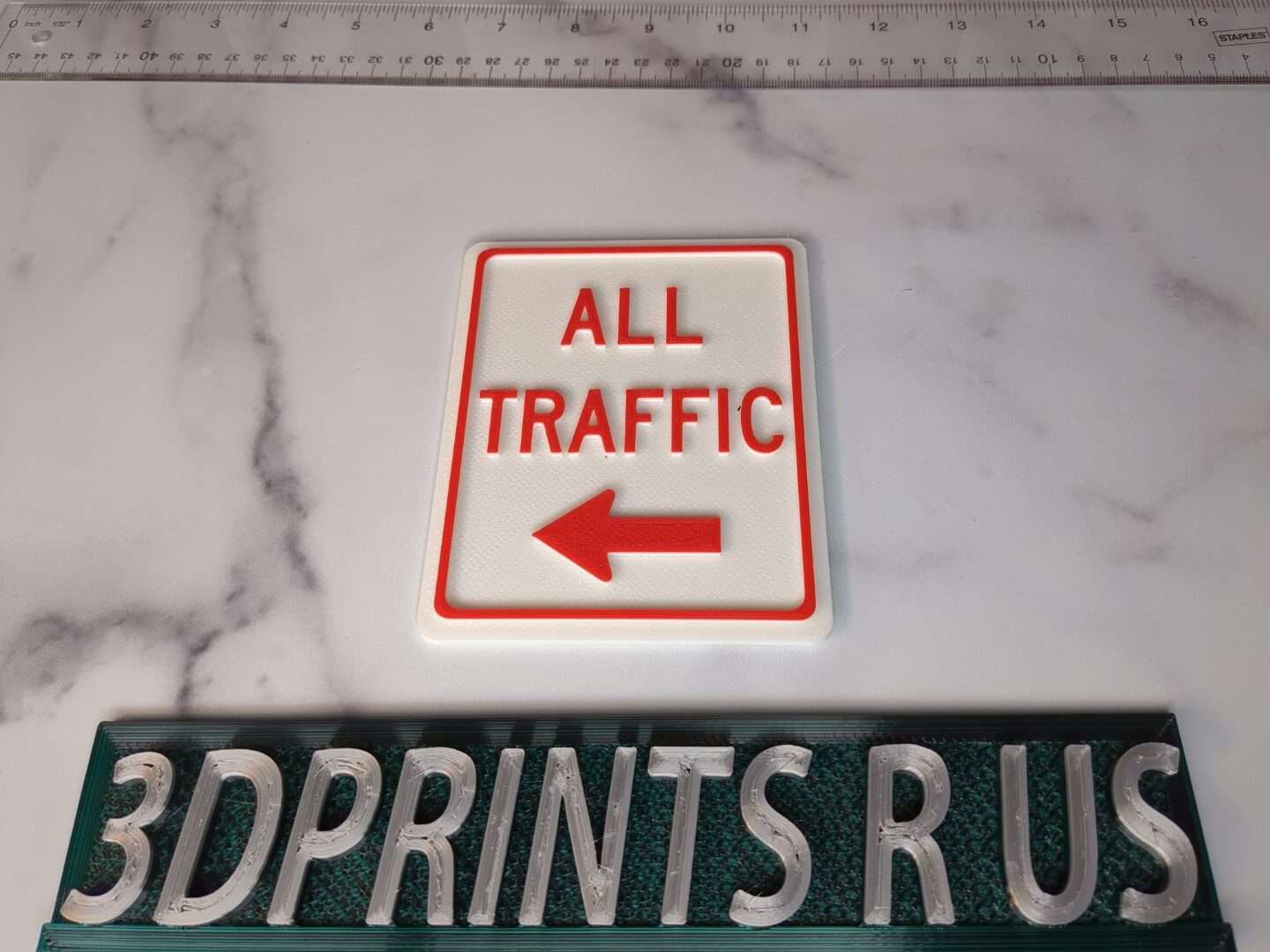 - All Traffic Left – White Background Red Lettering